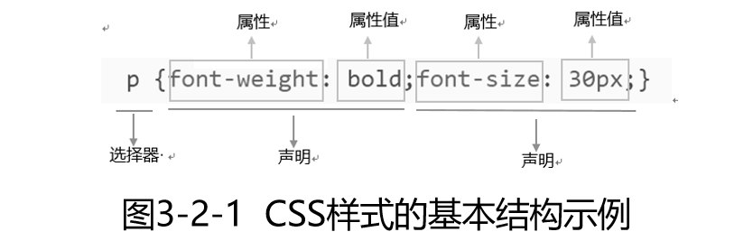 CSS样式由两个主要的部分构成:选择器、一条或多条声明。设置CSS样式的具体语法规则如下: 选择器{属性1:属性值1;属性2:属性值2;……} 在上面的规则中,选择器用于选择需要设置样式的HTML元素;{}内部是一条或者多条声明,每条声明由一个属性和属性值组成,以键值对的形式出现。 多条声明之间用英文分号“;”分隔,属性和属性值之间用英文冒号“:”分隔。